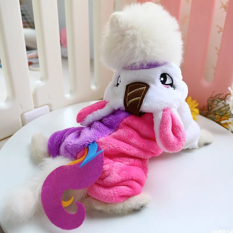 1PC Pet Clothes Dog Winter Thickened Velvet Warm Rainbow Unicorn Four-legged Hoodie Onesie