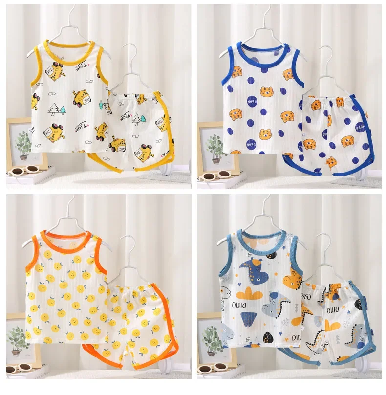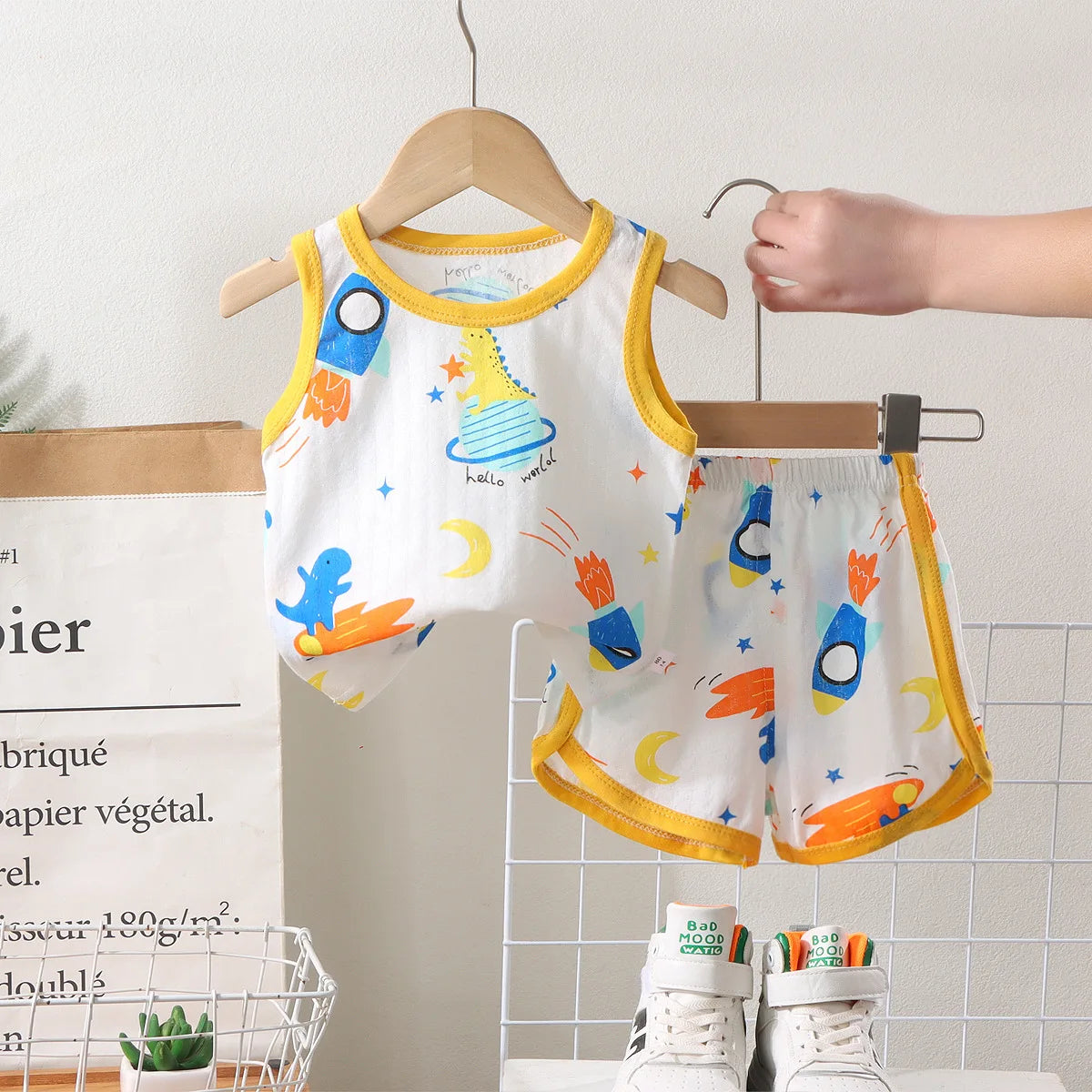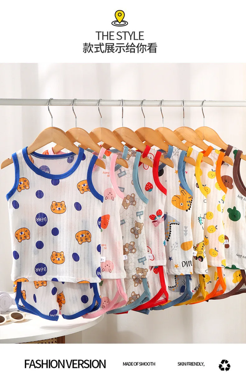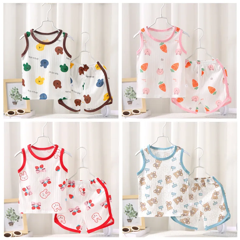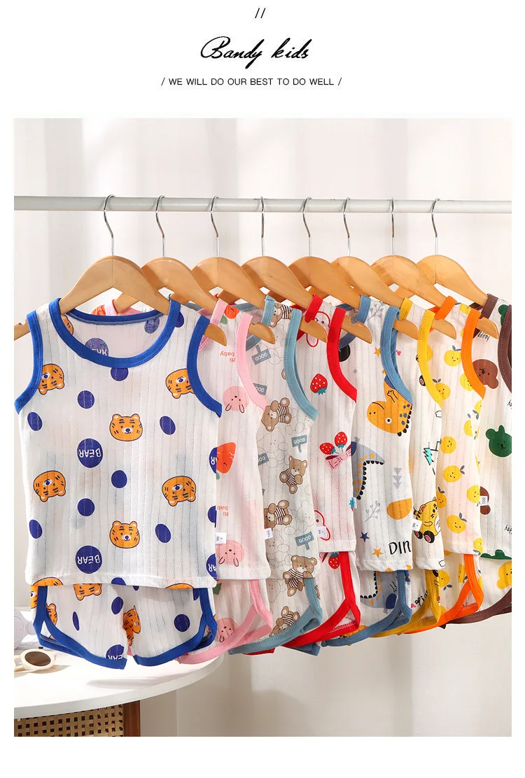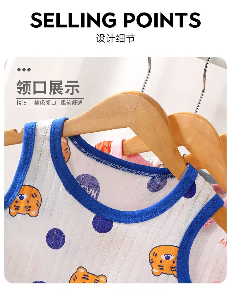 2025 New Kids Sleeveless Set Summer Cotton Girls' Shorts Pajamas Korean Style Boys' Tank Top Outfit Children Clothing Set