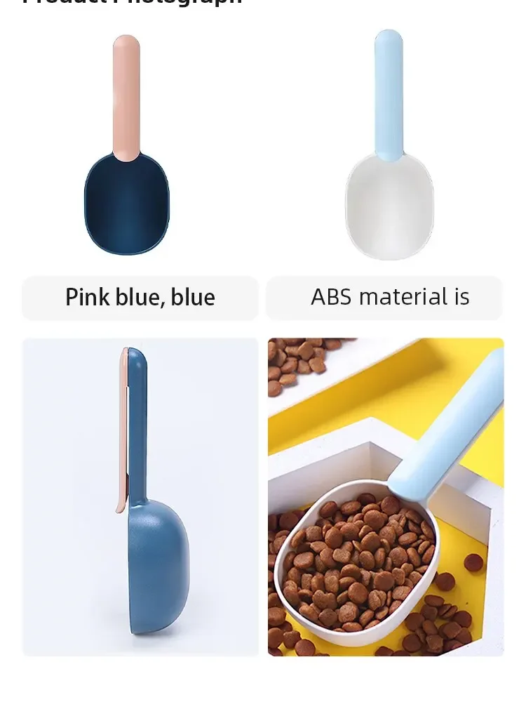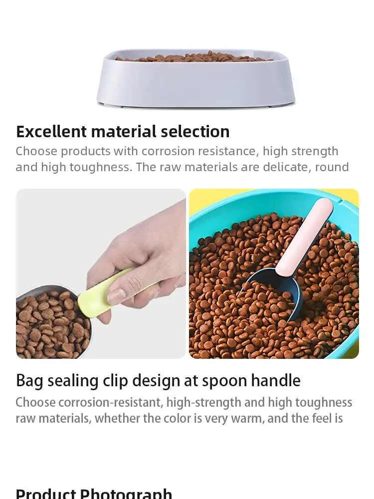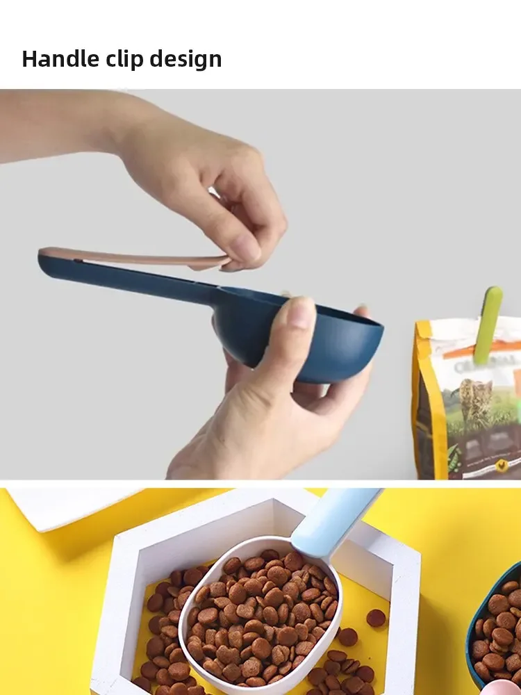 2PCS Dog Food Scoop Multifunctional Pet Feeding Spoon with Sealing Clip Grade Plastic Cat Food Dedicated Measuring Spoon