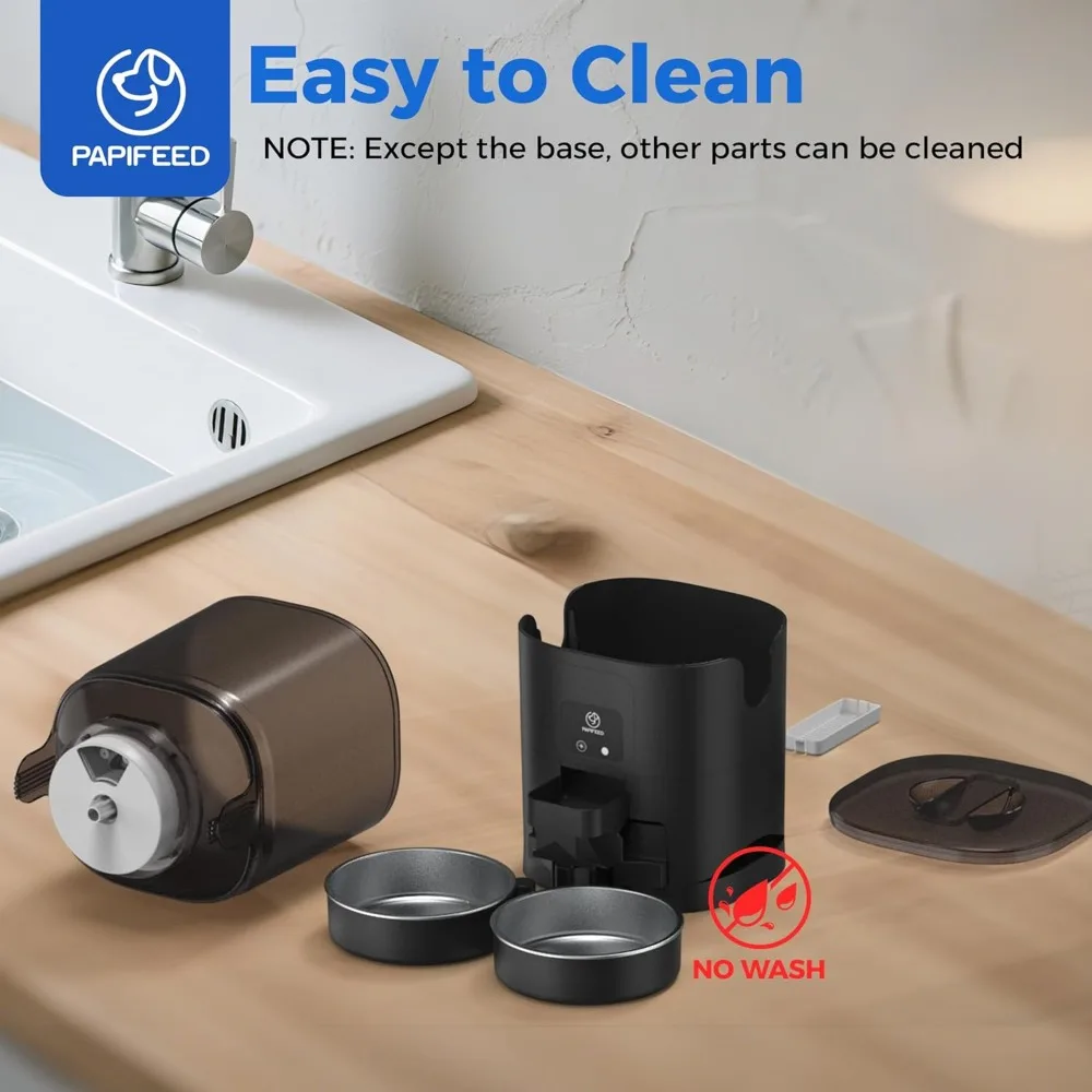 - 【Dual-Bowl Anti-Competition System】Dual cat feeder automatic releases food simultaneously into two bowls with one tap. Eliminates food fights – perfect automatic cat feeder for 2 cats or multi-pet homes.