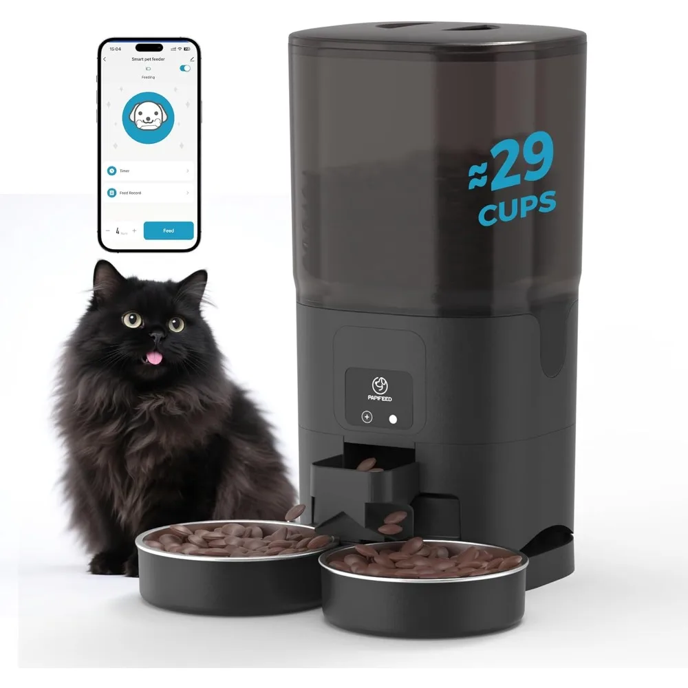- 【7L Capacity + Detachable Bowls】29-cup/7L dual automatic cat feeder stores weeks of food. Stainless steel bowls detach for dishwasher-safe cleaning – ideal automatic cat feeders 2 cat households.