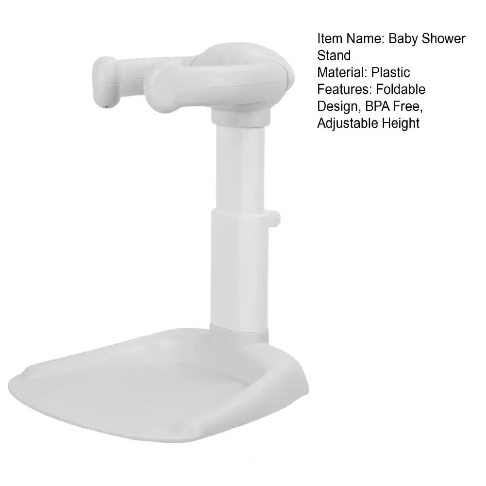 Foldable Design Baby Shower Stand with Armrest, High Stability Adjustable Height Baby Shower Standing Support, Collapsible Baby Shower Rack with Shower Head Holder