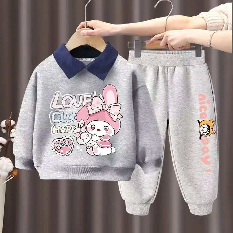 Autumn Kid Girls Clothes Set Children Boy Lapel Cartoon Bear Printed Sweatshirts Pullover Top And Pants Bottom Suit Tracksuits
