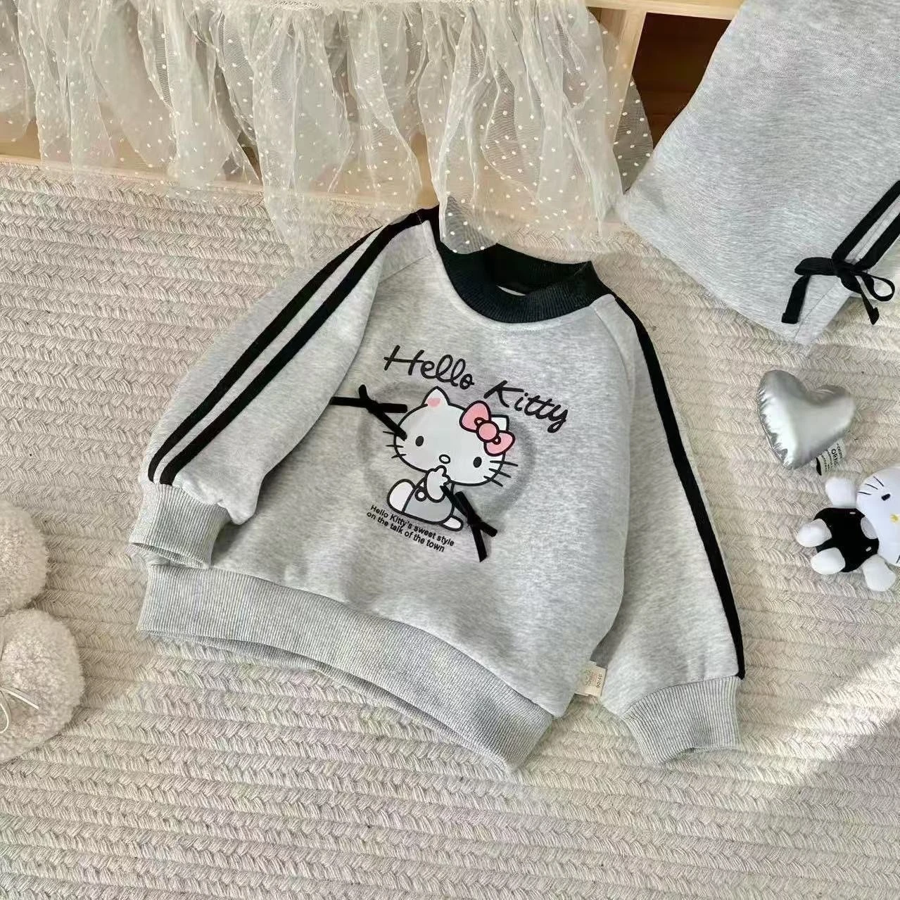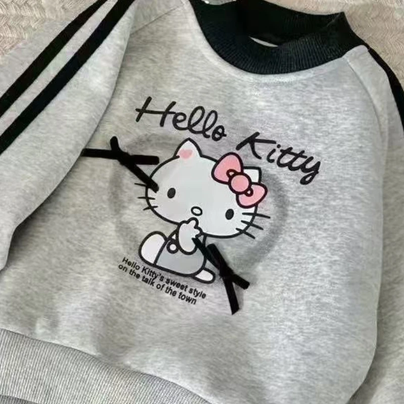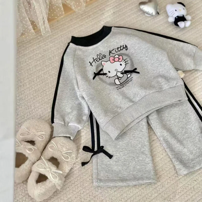 Baby Girl Clothes Set Autumn Kid Hello Kitty Sweatshirts Pullover Bow Top & Striped Pants 2pcs Suit Children Tracksuits Outfits