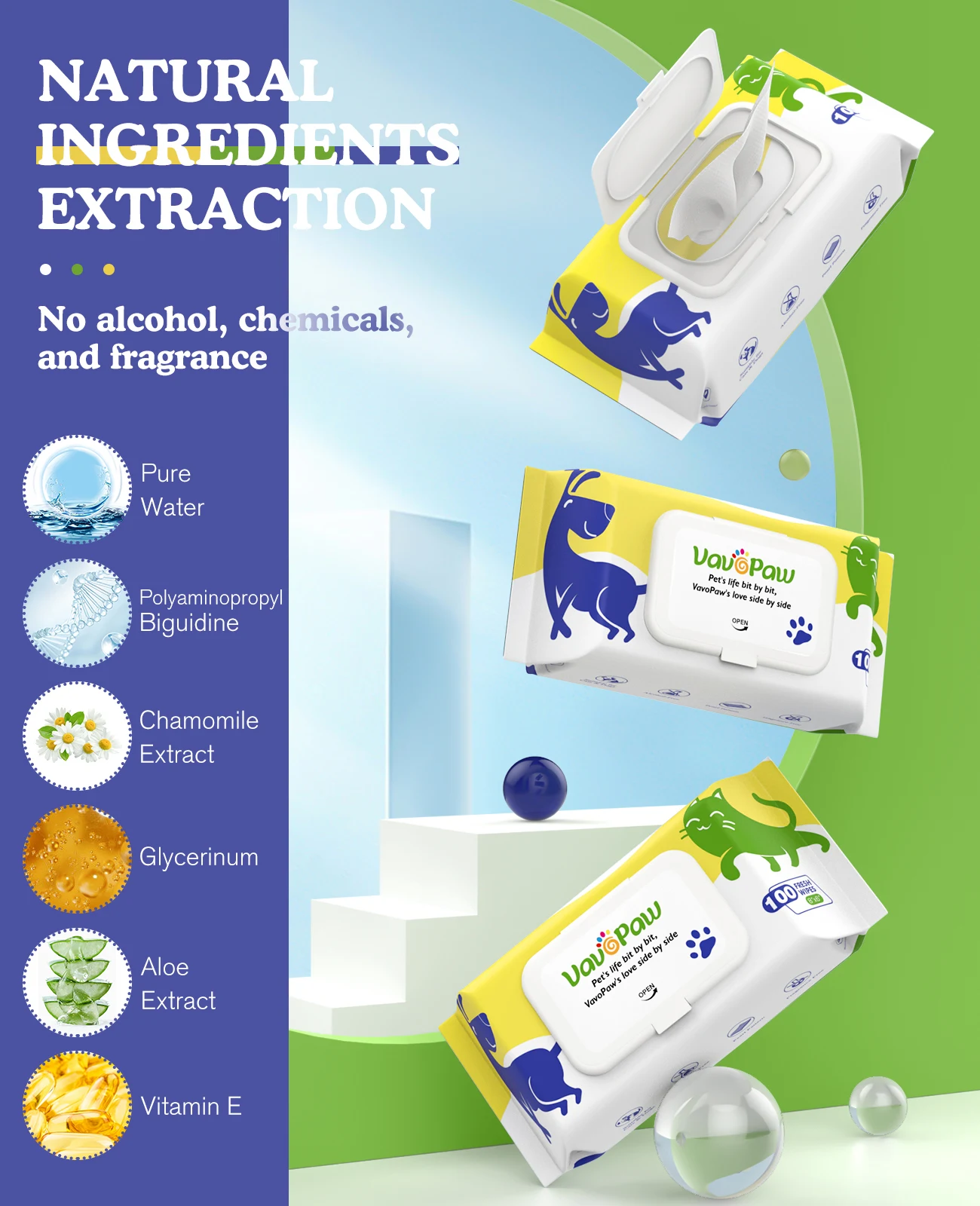 VavoPaw Dog Wipes for your dog's body, paw, ear, face, foot and bum without leaving wet residue, help your dog always keep clean and healthy.