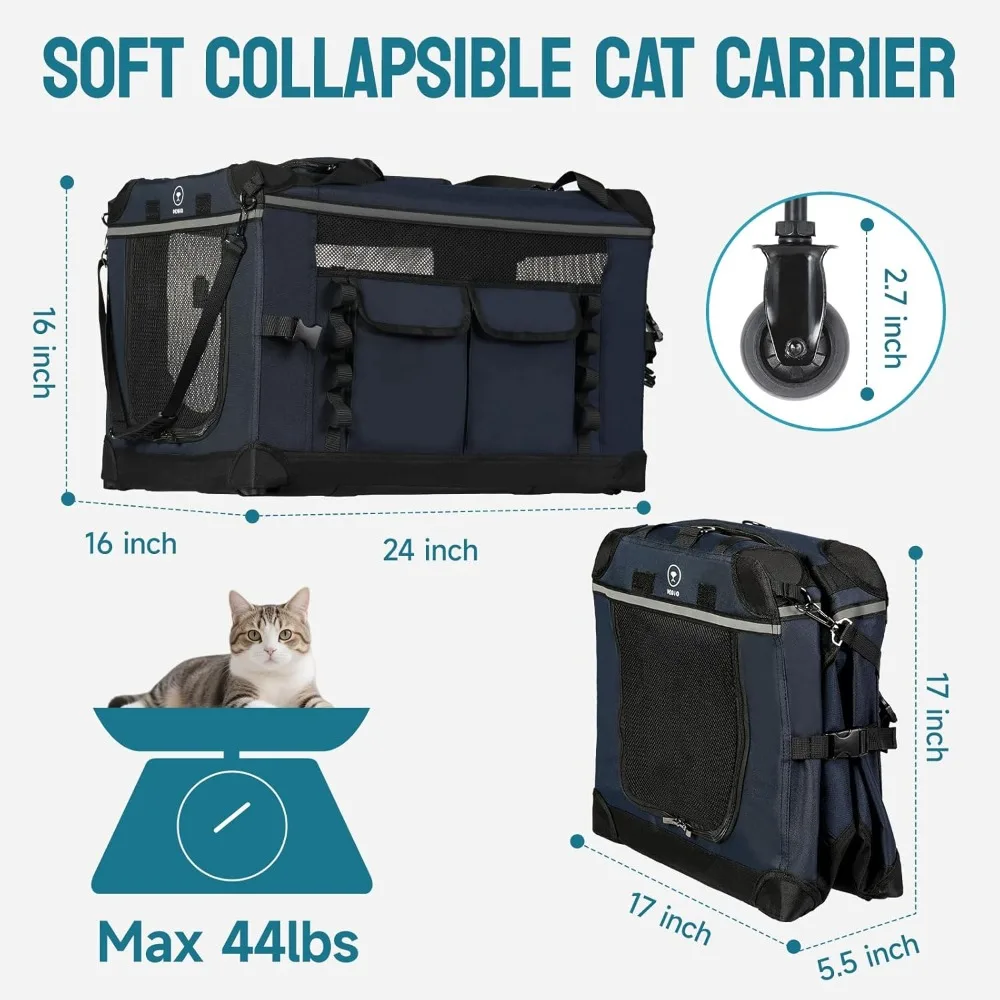 Foldable Cat Carrier with Removable Wheels – Large Pet Travel Carrier for Cats & Small Dogs, Breathable & Sturdy for Car