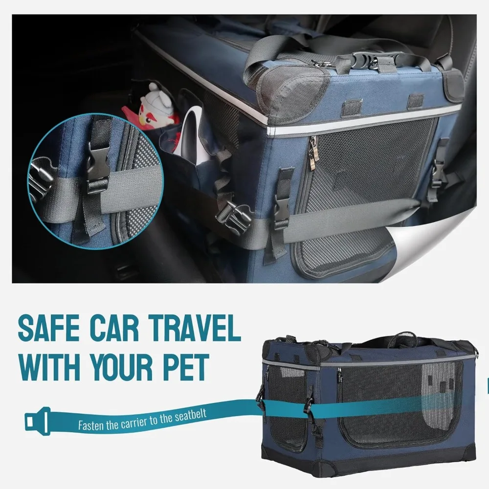 - 【Spacious & Comfortable for Pets】The extra-large 24" x 16" x 16" pet carrier provides ample room for 2 cats, medium and large breeds, or small dogs to relax, stretch, or move freely. Perfect for indoor use as a cozy hideaway or on-the-go travel with a weight capacity of 44 lbs. The foldable design ensures easy storage when not in use.