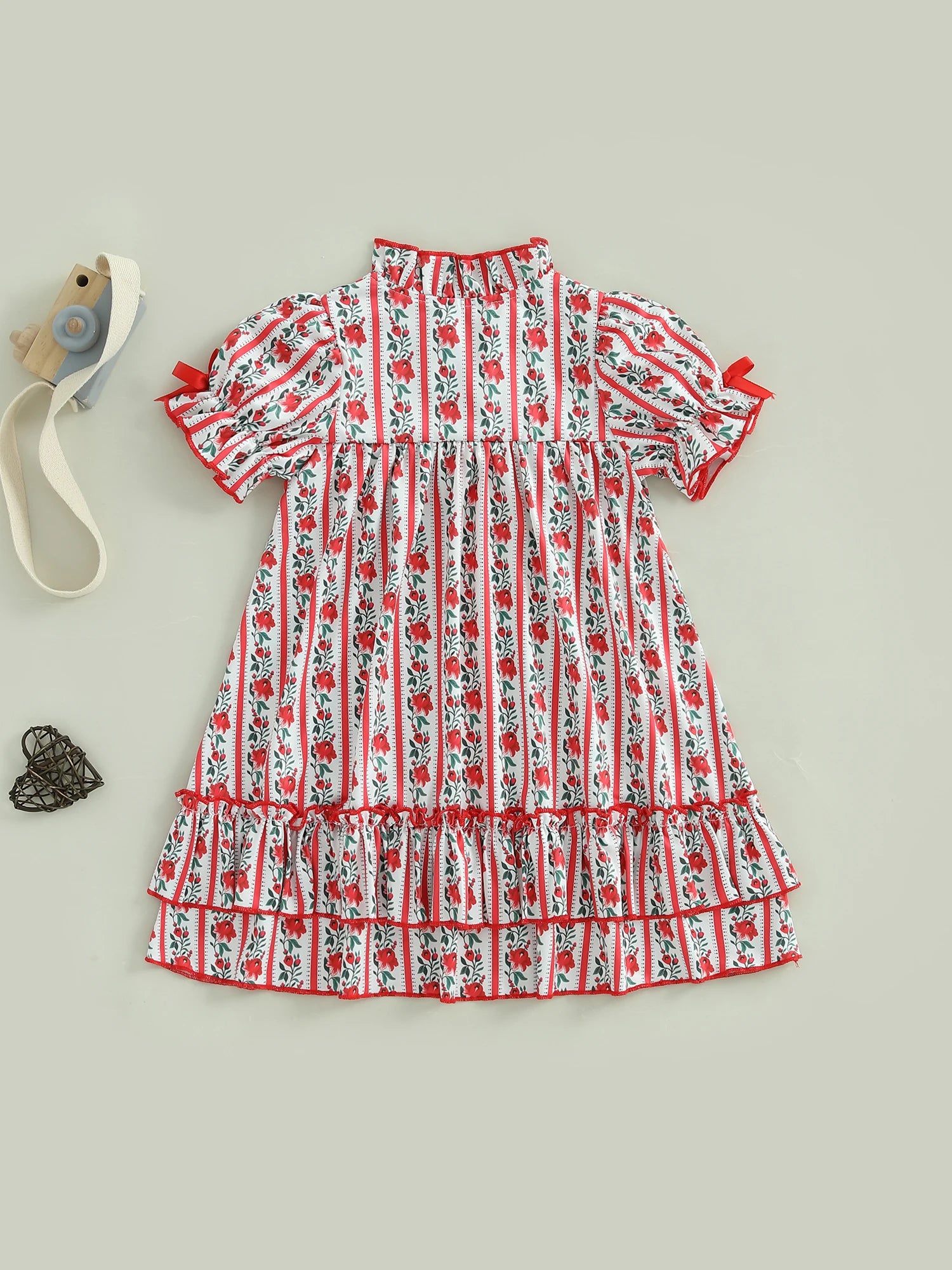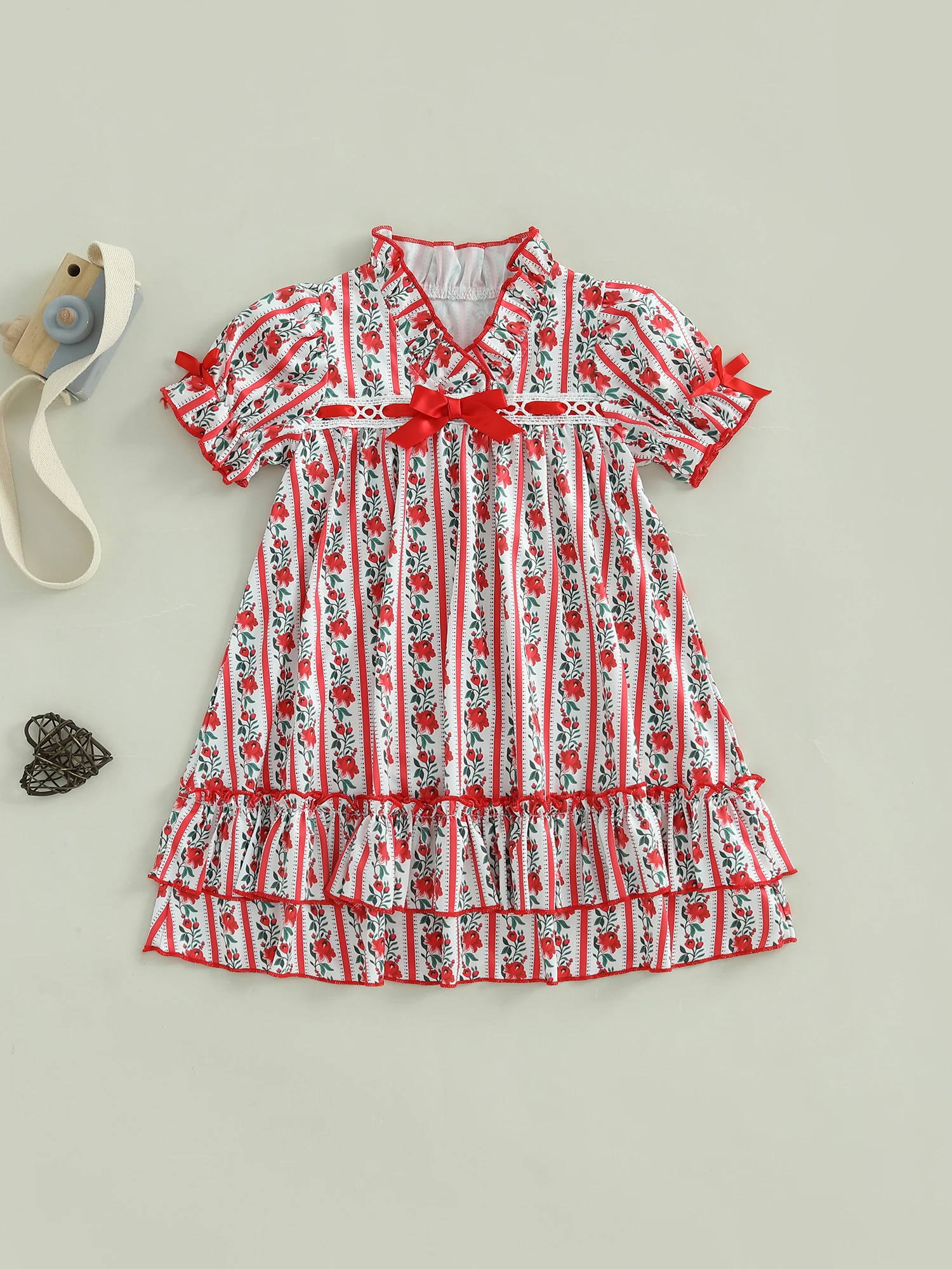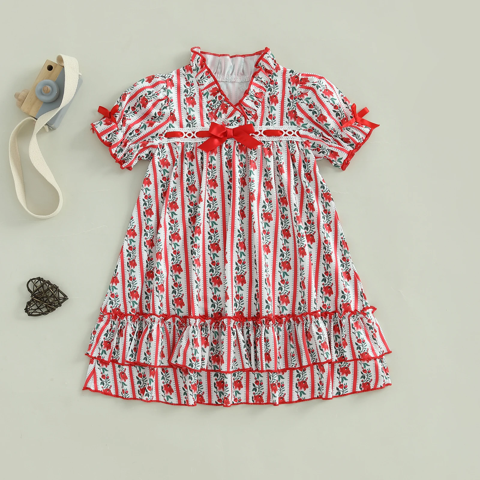 Kids Girls Dress, Short Sleeve V Neck Floral Dress Summer Dress Clothes for Casual Daily