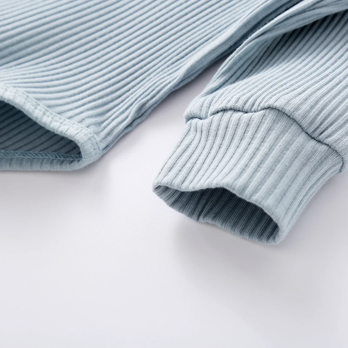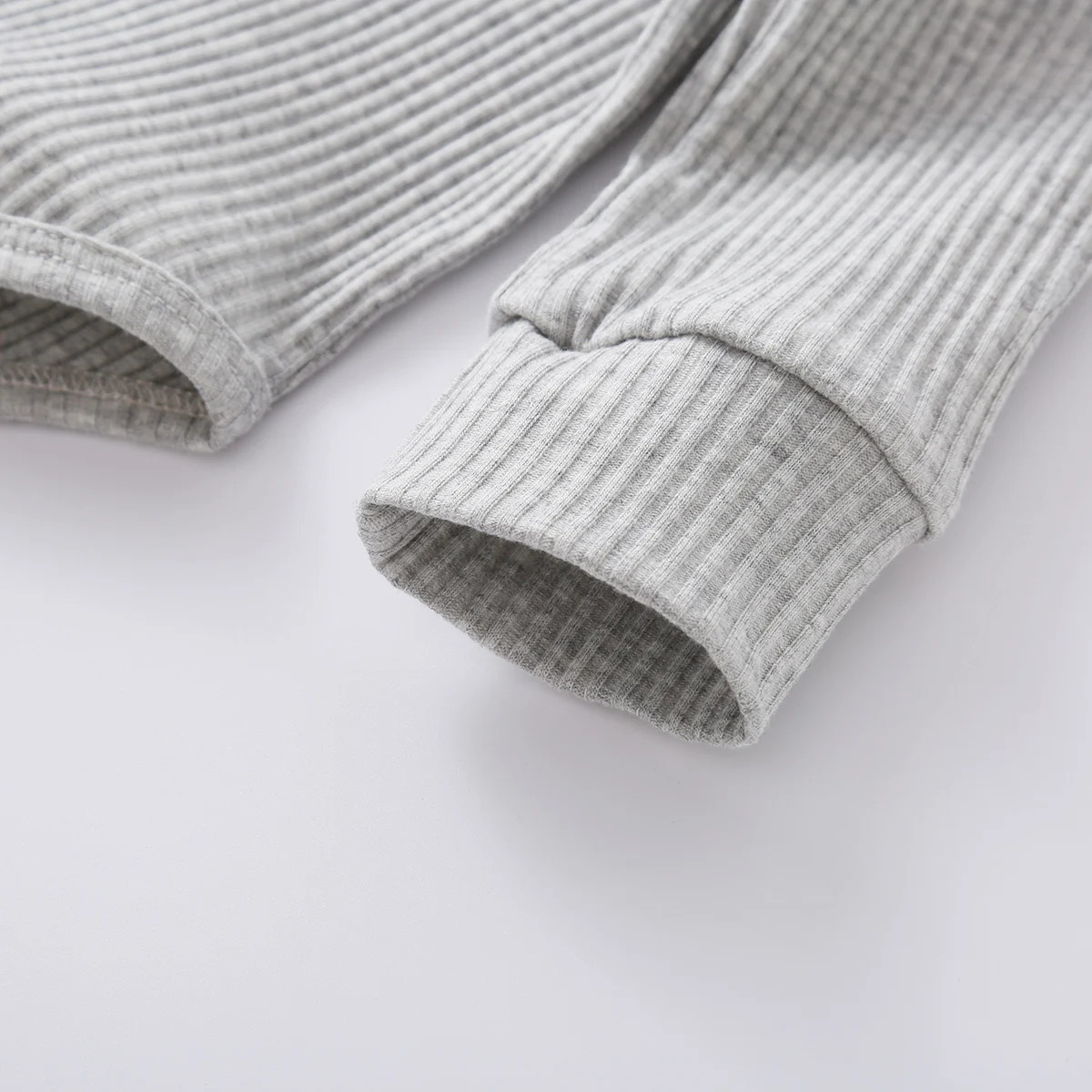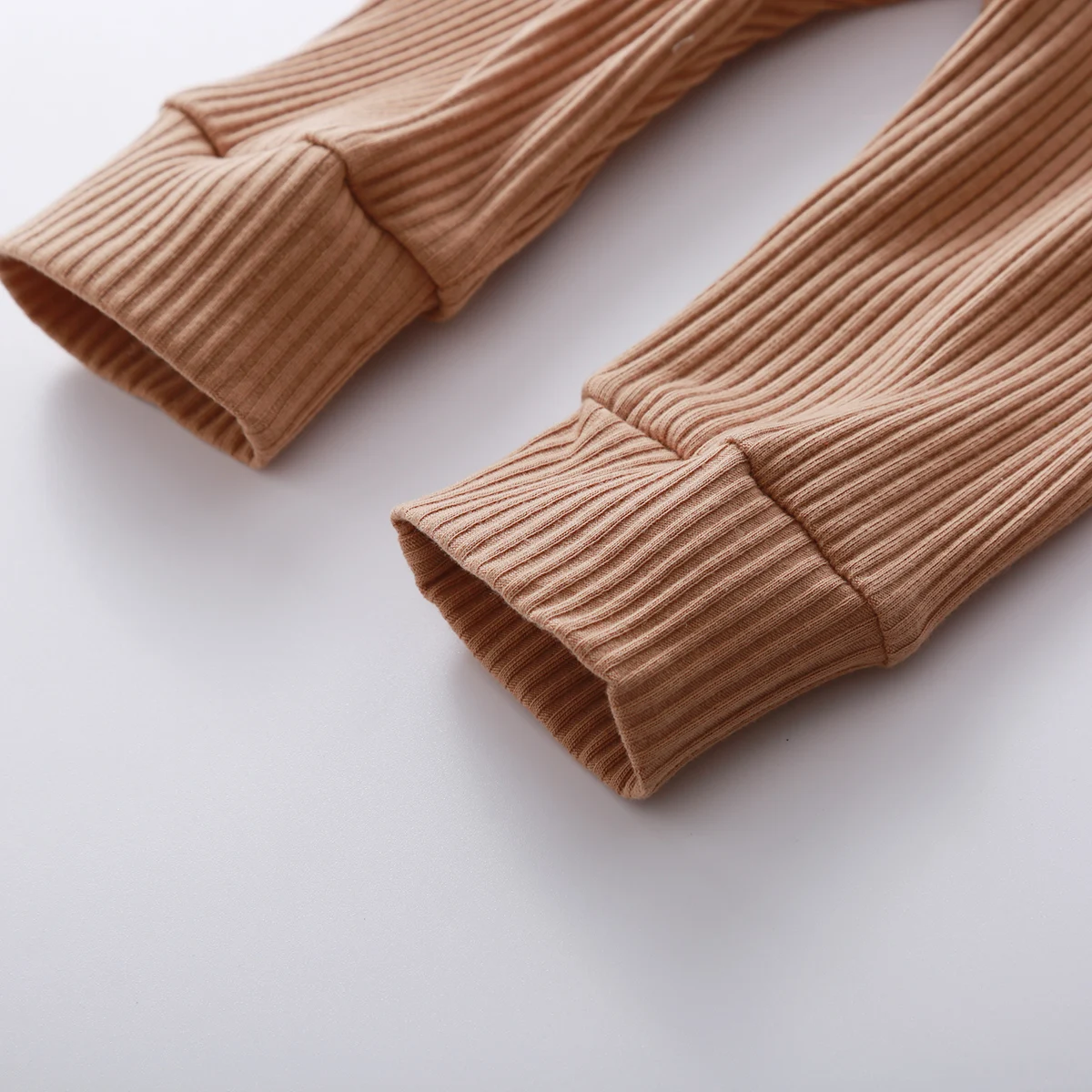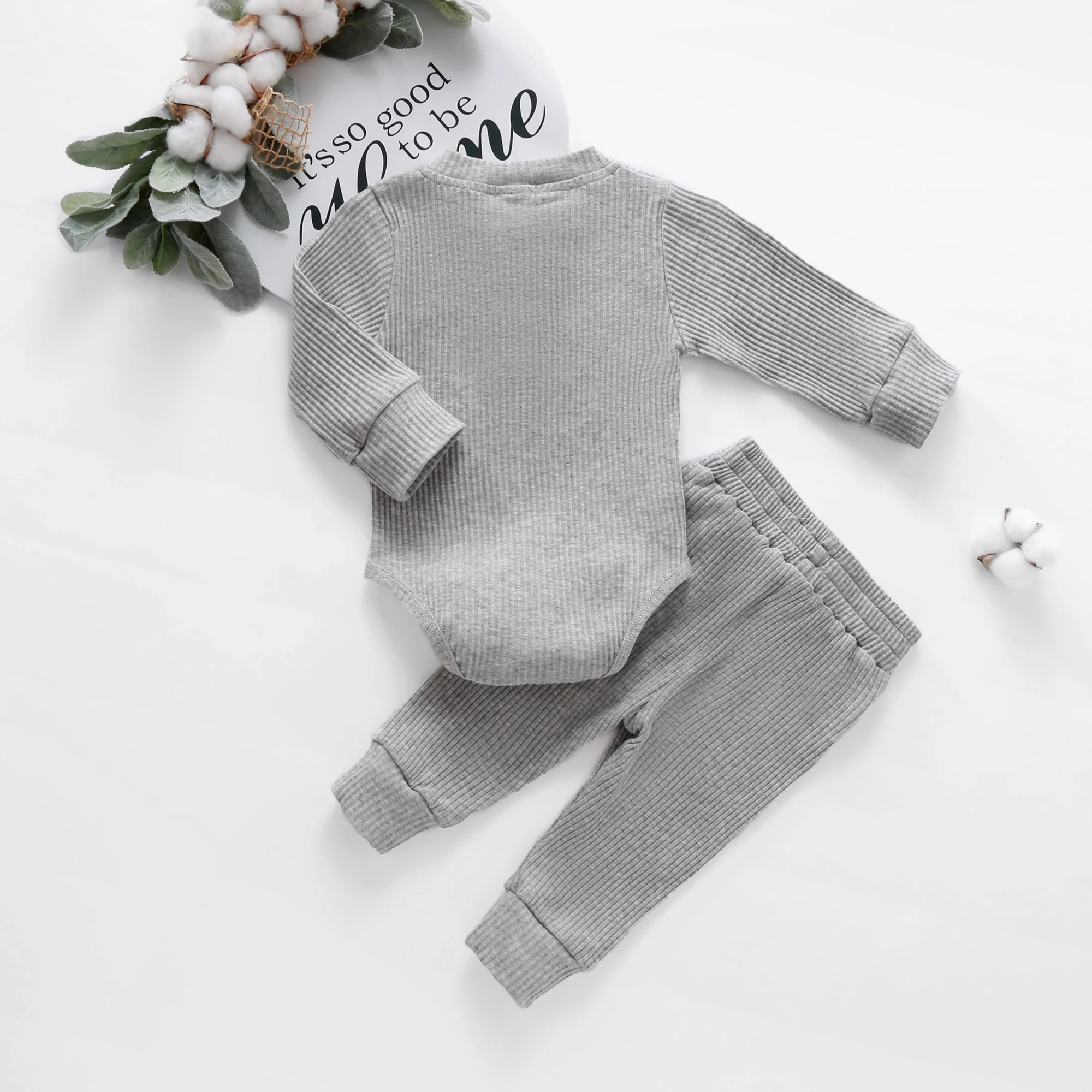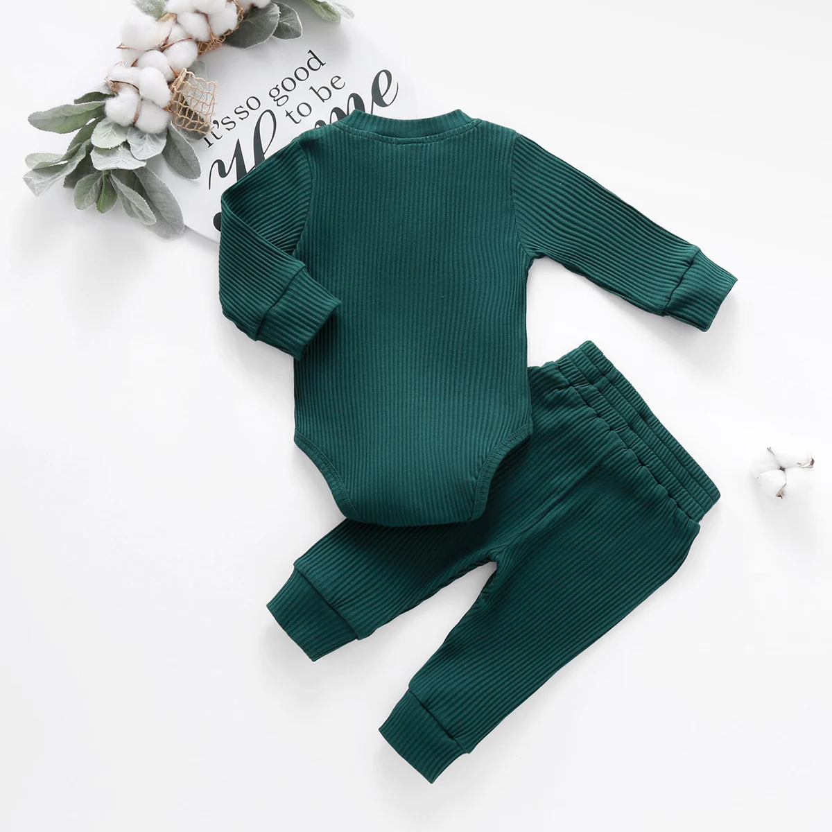 Infant Newborn Baby Girl Boy Spring Autumn Ribbed/Plaid Solid Clothes Sets Long Sleeve Bodysuits + Elastic Pants 2PCs Outfits