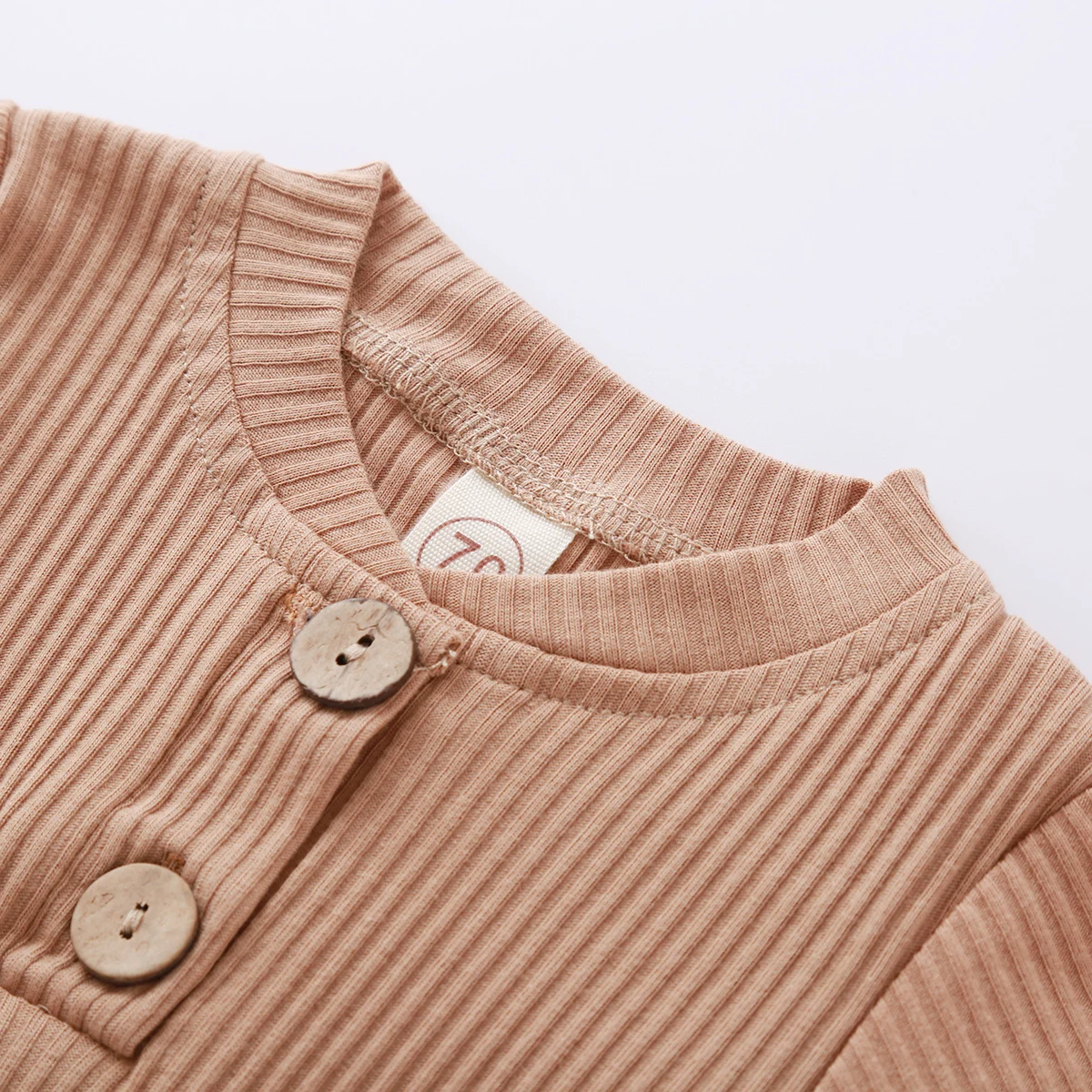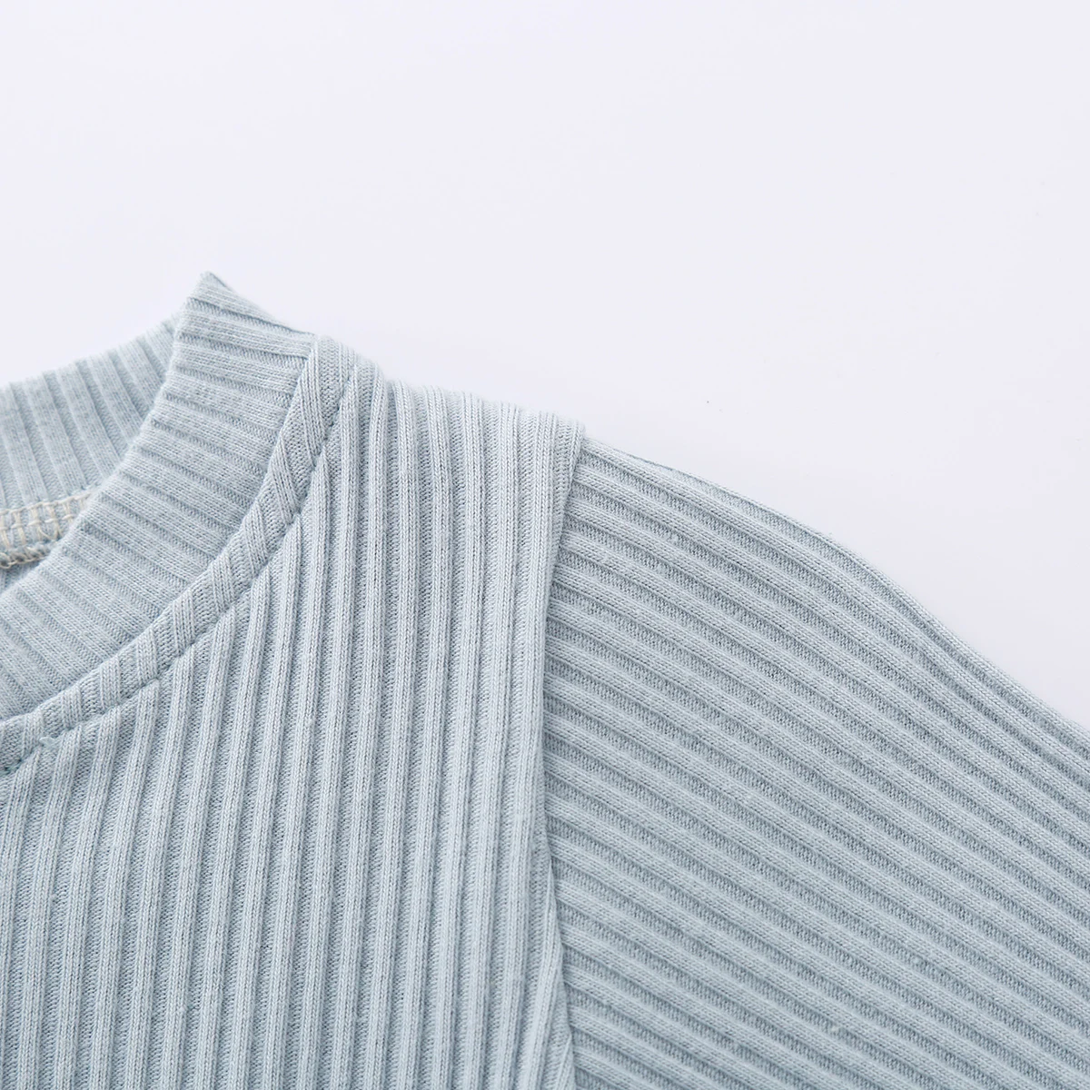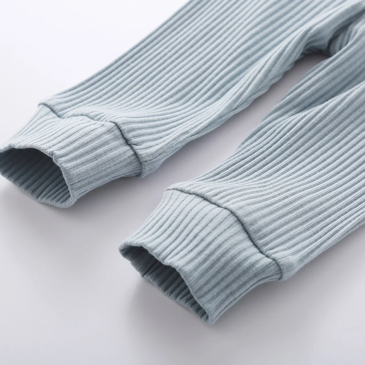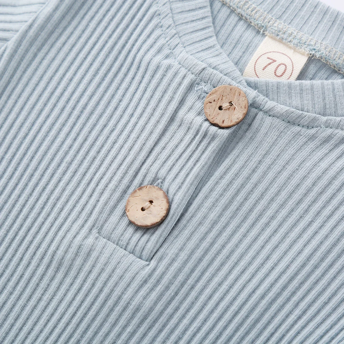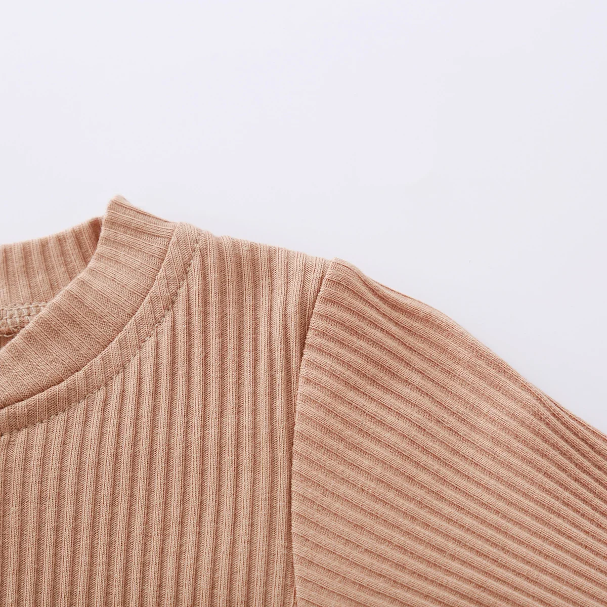 Infant Newborn Baby Girl Boy Spring Autumn Ribbed/Plaid Solid Clothes Sets Long Sleeve Bodysuits + Elastic Pants 2PCs Outfits
