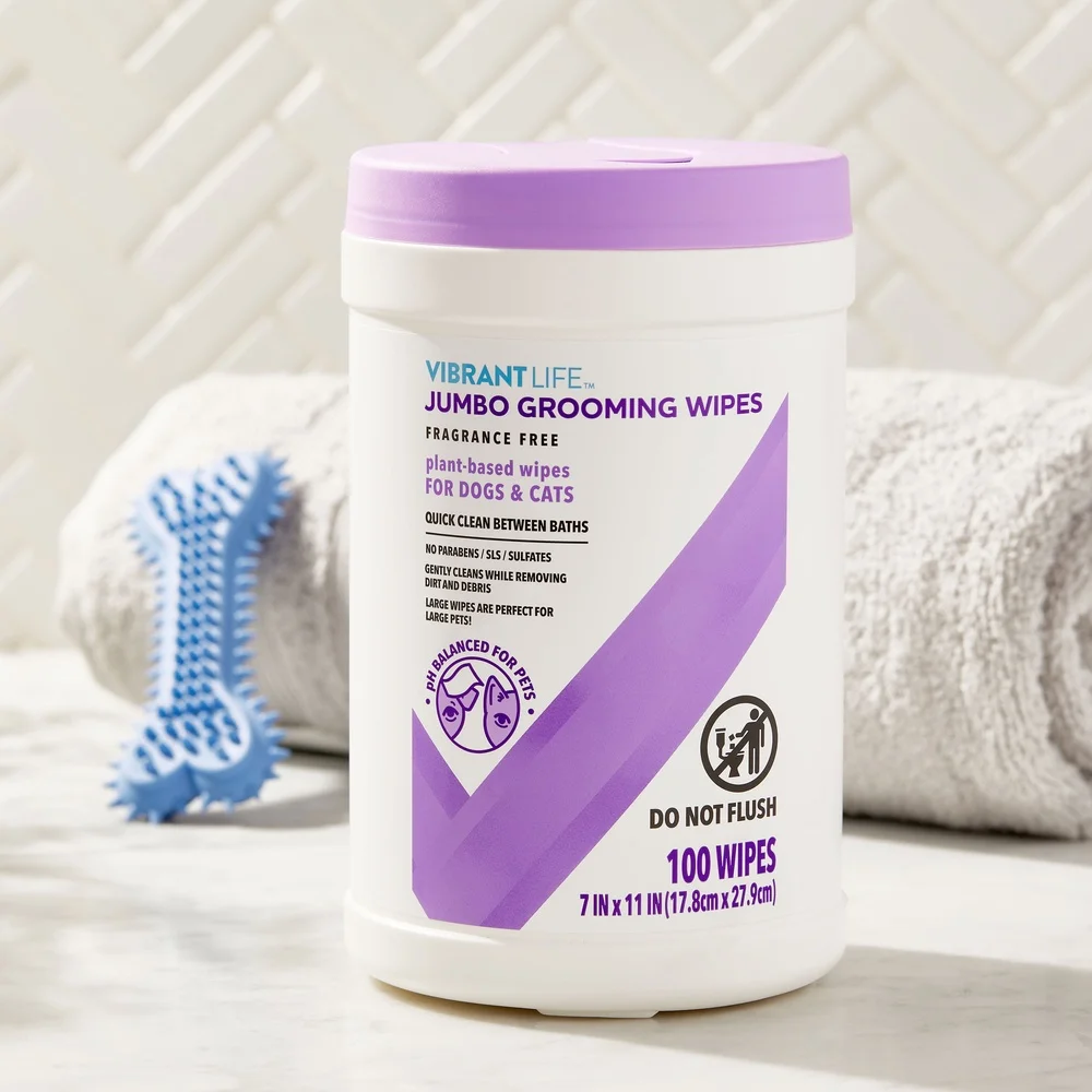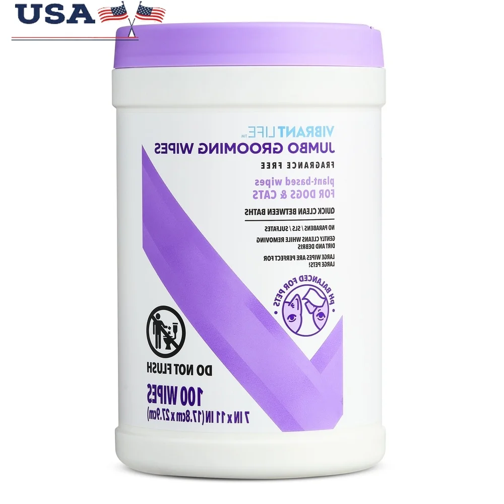 Jumbo Grooming Wipes Dogs and Cats Fragrance Free 100 Pre-Moistened Wipes Large Size Safe Cleansing Deodorizing Between Baths