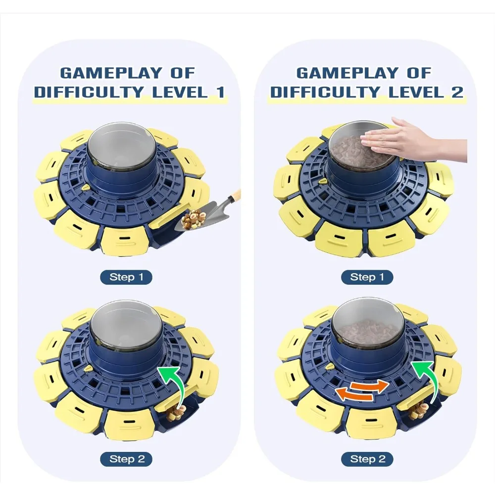 - [Adjustable Difficulty with 6 Treat Channels] KADTC’s dog puzzle toy offers six adjustable treat channels, allowing you to customize the difficulty level for your dog. From simple to advanced, the toy requires your dog to rotate the central part to fully release the food into surrounding treat boxes, adding extra challenge. This advanced design is perfect for intelligent dogs, offering greater intellectual stimulation. Before using the toy, please refer to the illustrated manual and product video for instructions.