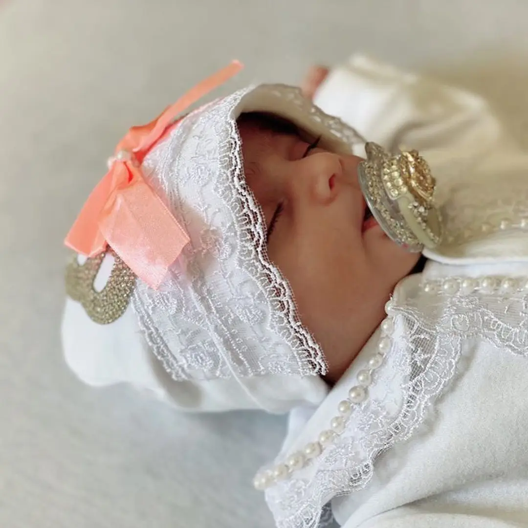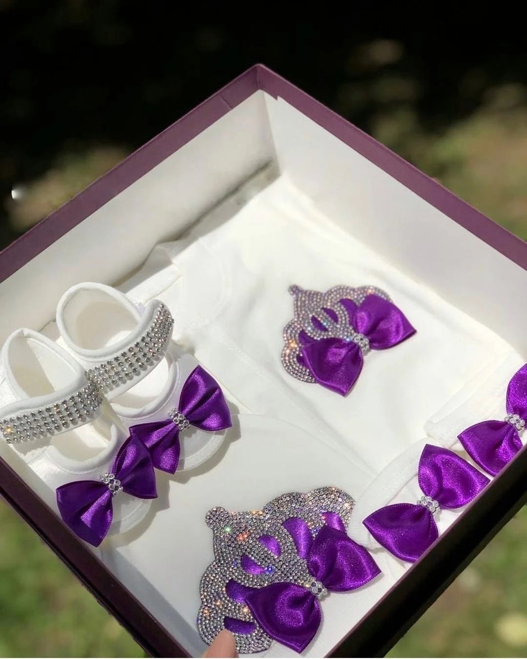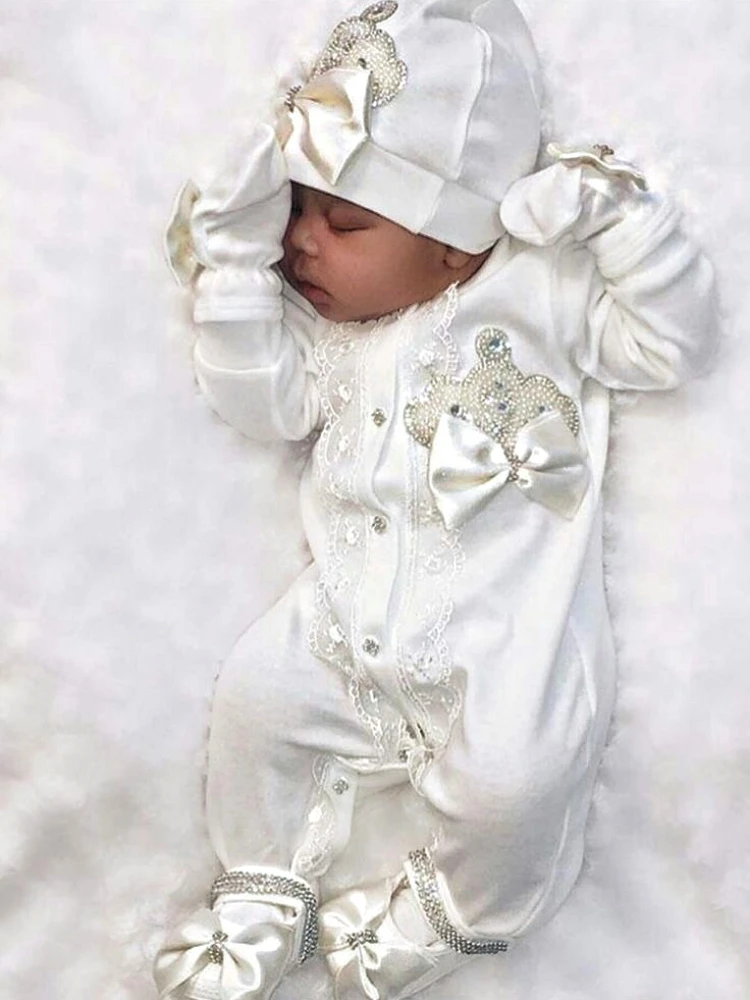Our 5 pieces set is made up of soft, thick cotton. They are embellished with rhinestone buttons, crown jewels and bows.
