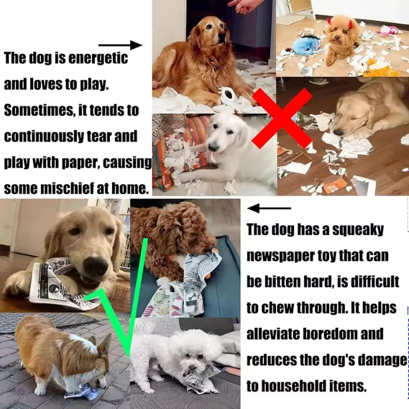 Tearproof Newspaper Dog Toys Funny Ringing Paper Dog Chew Toy Interactive Bite-Resistant Puppy Squeak Toys Dog Supplies