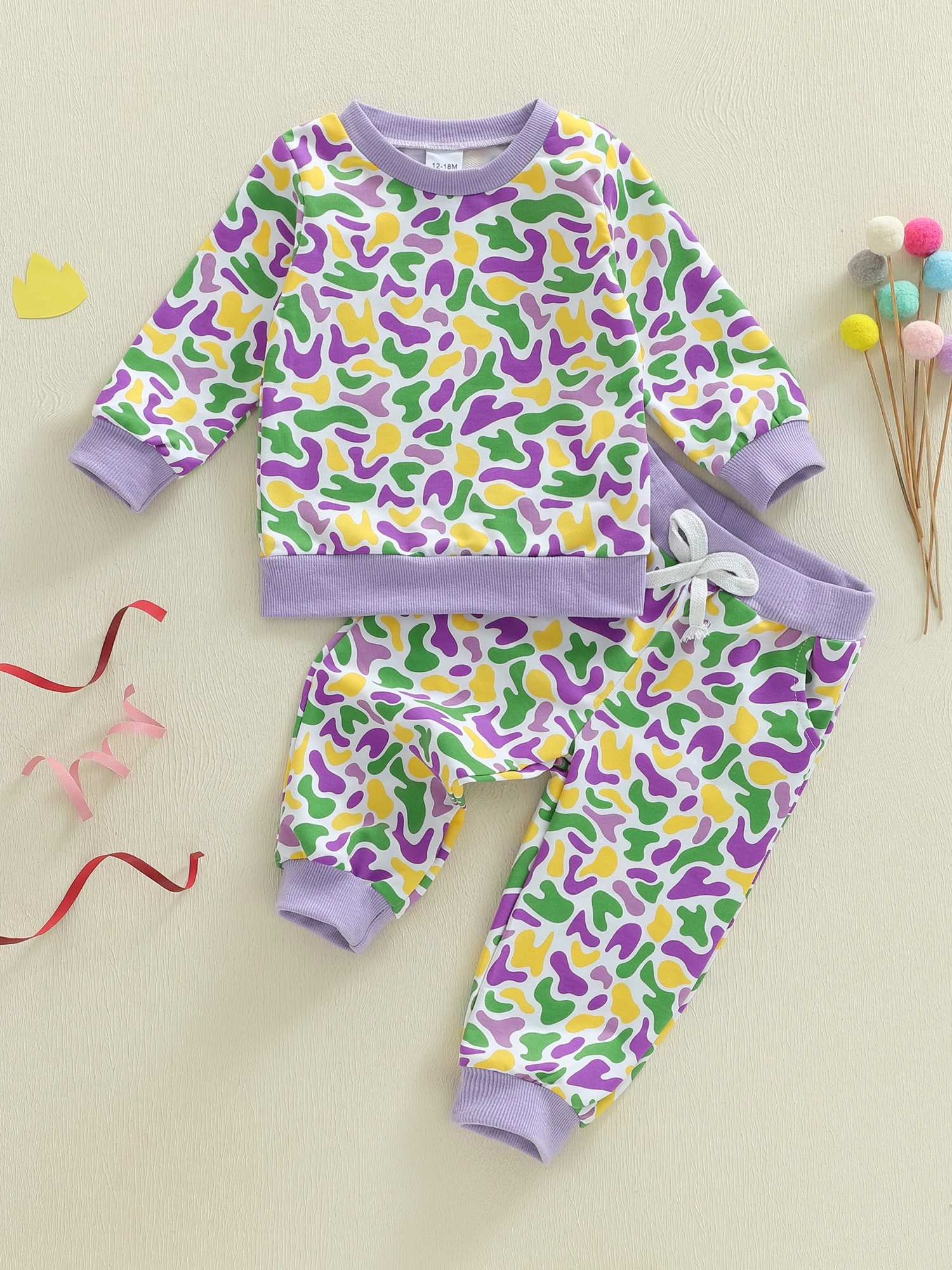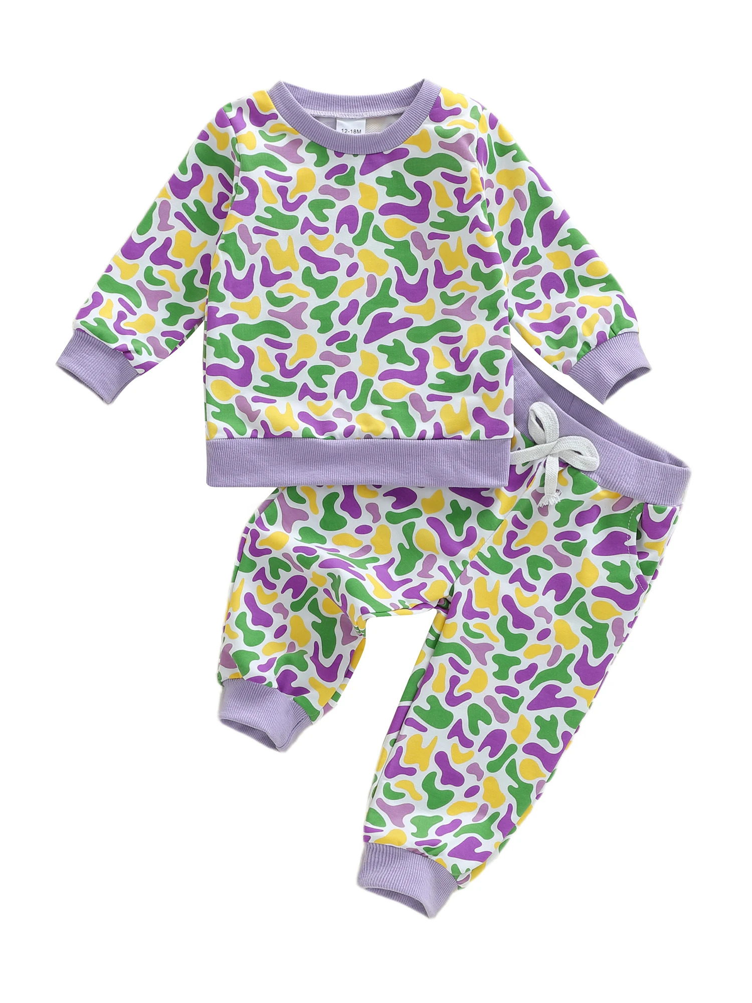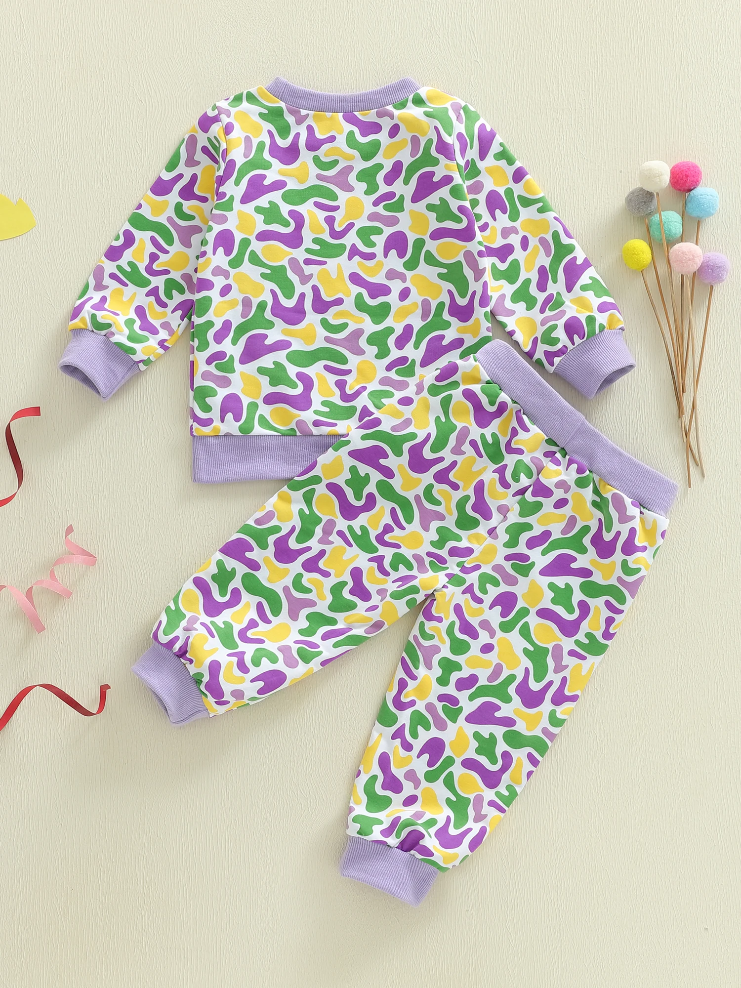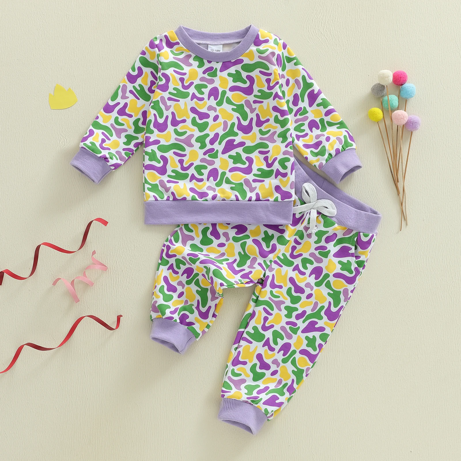 Toddler Baby Mardi Gras Outfit Fashionable Camouflage Long Sleeve Pullover with Pants 2Pcs Clothing Set